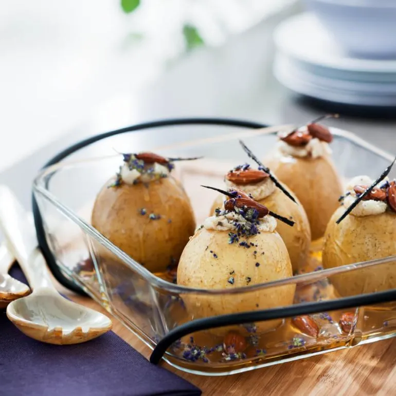 Det ovnfaste glassfatet (laget i blyfritt glass) i mellomstørrelse har et enkelt og lett uttrykk og kan gå direkte fra ovn til et dekket bord. Bruk det også til servering av snacks, frisk frukt og små salater. Grand Cru-seriens enkle design setter maten i fokus. Fatene fås i tre størrelser og kan stables slik at de tar minst mulig plass.