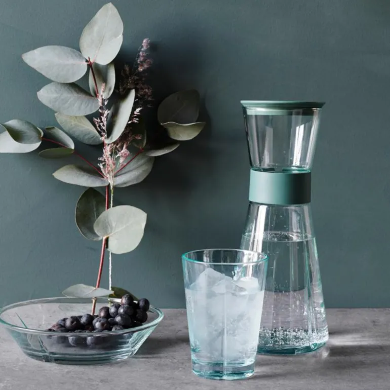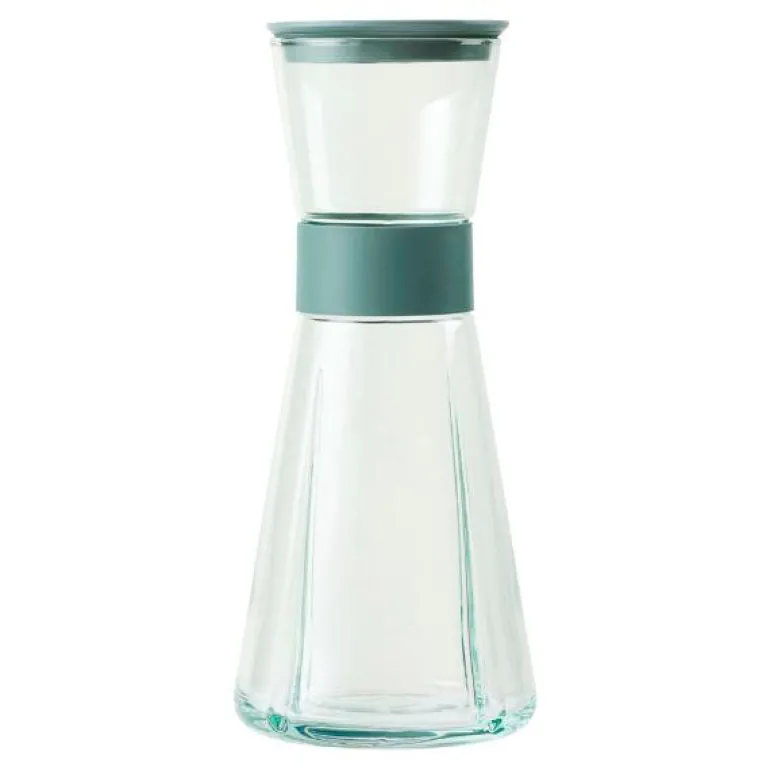 Rosendahl Grand Cru Recycled-karaffel er en moderne og ansvarlig videreutvikling av den ikoniske Grand Cru-karaffelen, som kjennetegnes av en ny form for eleganse og letthet. Den rommer 90 cl og er smalere enn sin forgjenger, så den passer perfekt i kjøleskapsdøren. Og det vakre svakt grønnfargede gjenbrukte glasset og plastbåndet i biobasert plast er med på å skape et helt spesielt og stilfullt uttrykk ? nytt og moderne, men fortsatt tro mot opphavet. Rosendahl har også videreutviklet lokket, slik at du får et vakkert, oppdatert «keep fresh»-cover på toppen av Grand Cru Recycled-karaffelen som holder vannet friskt i kjøleskapet. Det er også laget i biobasert plast