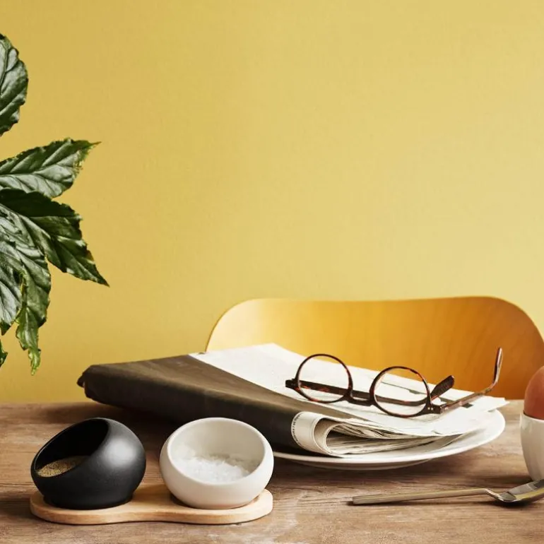 I moderne, nordisk design blir salt- og pepperkaret fra Rosendahl et fint innslag i borddekkingen. Karene er laget med en matt glasur på utsiden og blank på innsiden, og kommer sammen med en fot fremstilt av ubehandlet europeisk eik. Karene tåler oppvaskmaskin på maks 55 grader, eikefoten tåler ikke oppvaskmaskin.