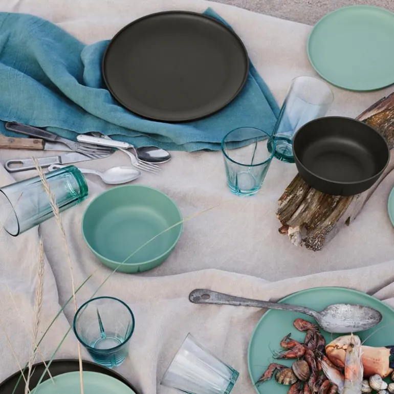Kaffepause i solen eller piknik i parken? Uansett hvor du vil kose deg, blir opplevelsen bedre når maten serveres på et servise som er designet for å brukes utendørs. TAKE-serien er produsert i Danmark og er laget av biobasert plast, et CO2-redusert alternativ til vanlig plast. Utendørsserviset kan brukes om igjen og om igjen, og er 100 % resirkulerbart og støtter sirkularitet. Serien består av tallerkener i to størrelser, en bolle og et krus som kan brukes til både kalde og varme drikker.