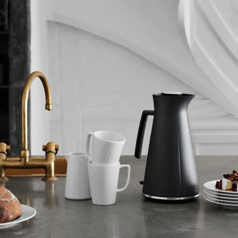 Den nye funksjonelle Grand Cru-vannkokeren fra Rosendahl er basert på det samme formspråket som den klassiske Grand Cru-termokannen. Den er fremstilt i BPA-fri plast og kommer i to fargeversjoner. Grand Cru-vannkokeren rommer 1,4 liter, og begge fargene fremhever på vakkert vis det klassiske Grand Cru-designet med de fire rillene. Den sorte vannkokeren har en base i rustfritt stål, mens den mørkegrå har en base i patinert stål som gir en flott, varm glød. Vannkokeren utmerker seg ved å være enkel å fylle og helle med. Du trenger derfor ikke å ta av lokket for å fylle på eller helle vann. Vannkokeren har et skjult ledningsfeste, og en base som kan dreies 360 grader, slik at du plassere den akkurat der du ønsker på kjøkkenbenken.