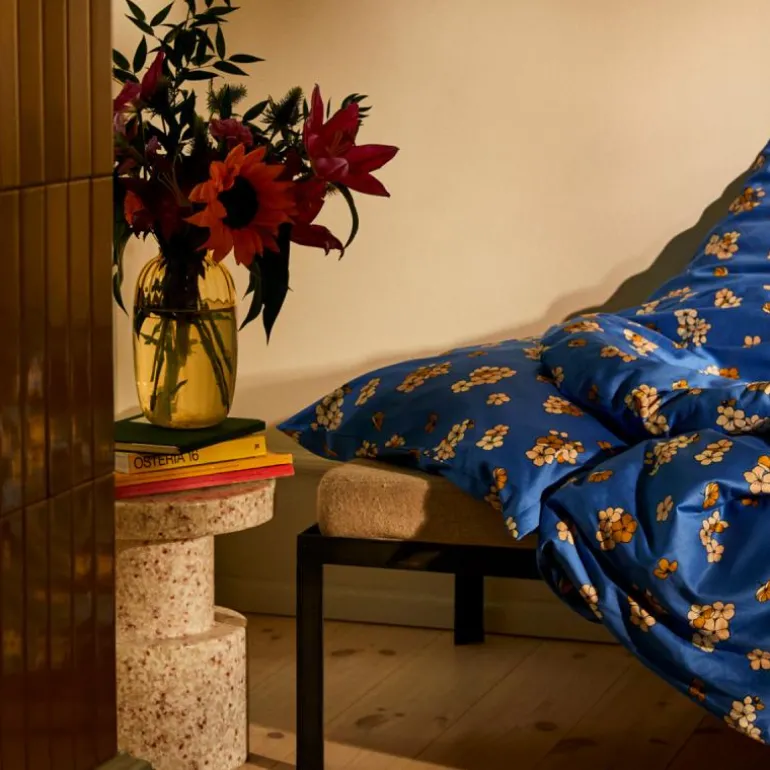 Grand Pleasantly kommer i grunnfargene blå og chili, og er inspirert av høsten. Materialet er 100 % økologisk bomullssateng som ikke bare er mykt og lekkert, men også er OEKO-TEX®-merket og GOTS-sertifisert. Både putevaret og dynetrekket har en praktisk glidelåslukking og fås i mange størrelser. Har du flere forskjellige sengesett fra JUNA, kan du mikse og matche forskjellige farger, mønstre – og blomsterstørrelser – på kryss og tvers og skape din helt egen stil på soverommet.