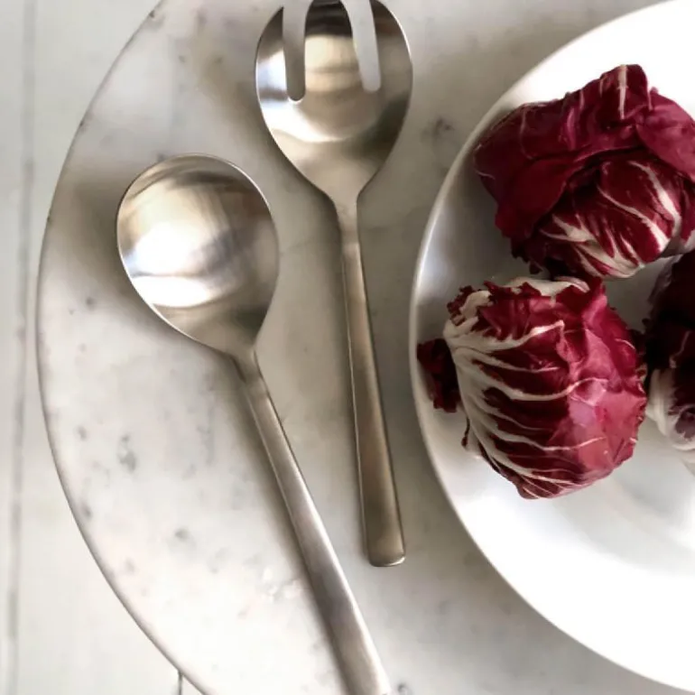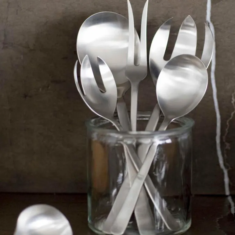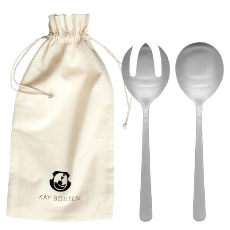 Et lite salatbestikk i te deler, Grand Prix fra Kay Bojesen. Serveringsskje og gaffel sikrer et fast grep om grønnsaker og salater. Det lille salatsettet består av: 1x liten salatskje (18,5 cm) og 1x liten salatgaffel (18,5 cm). Leveres i Kay Bojesen gavepose i 100% bomull.