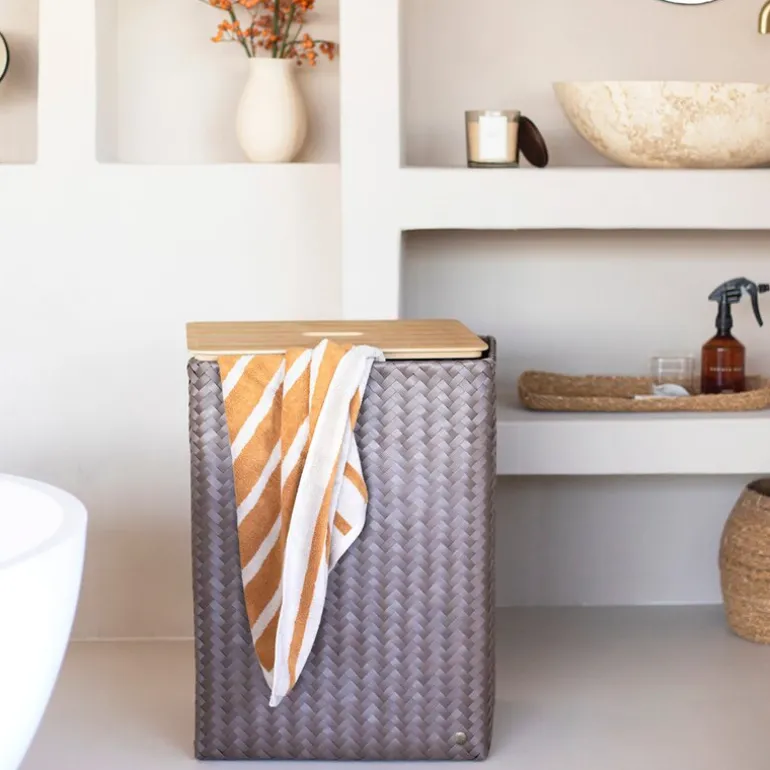 Grand Superb skittentøyskurv med lokk 44x31x60 cm i taupe fra Handed By er en romslig og elegant løsning for oppbevaring av skittentøy. Den tilhører Grand-kolleksjonen og er den største kurven i serien – ideell for travle husholdninger.