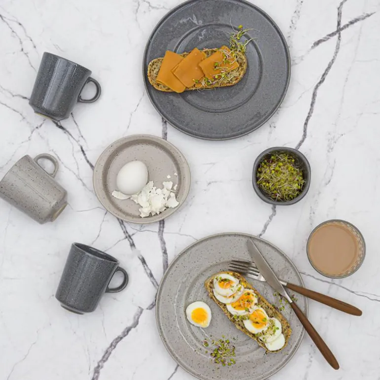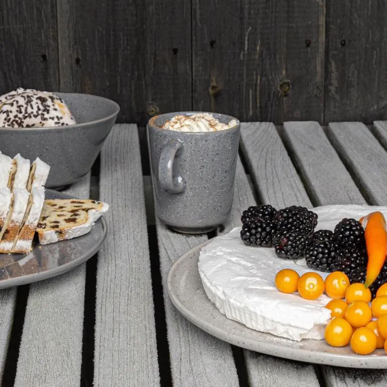 Nydelig servise i rustikt preg i glasert grå med spettete partikler . Produsert i Portugal som er kjent for sin høye ekspertise på kvalitet til det dekkede bordet.
