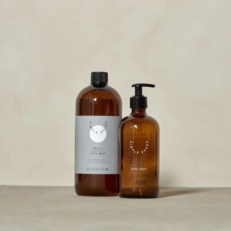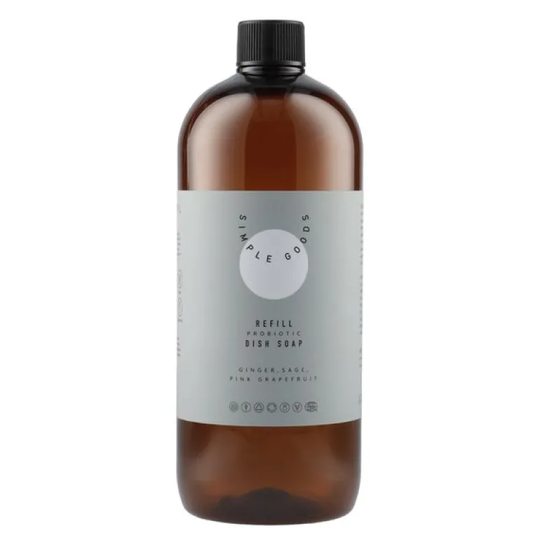 Grapefruit refill oppvasksåpe på 1000 ml fra Simple Goods er laget av naturlige og organiske ingredienser, beriket med probiotika for en effektiv og skånsom rengjøring av oppvasken. Denne oppvasksåpen etterlater tallerkener og glass rene, skinnende og med en behagelig duft. Duften er nøye sammensatt av 100 % økologiske eteriske oljer, der ingefær gir en avslappende effekt, mens salvie og rosa grapefrukt gir en oppkvikkende og stabiliserende følelse.