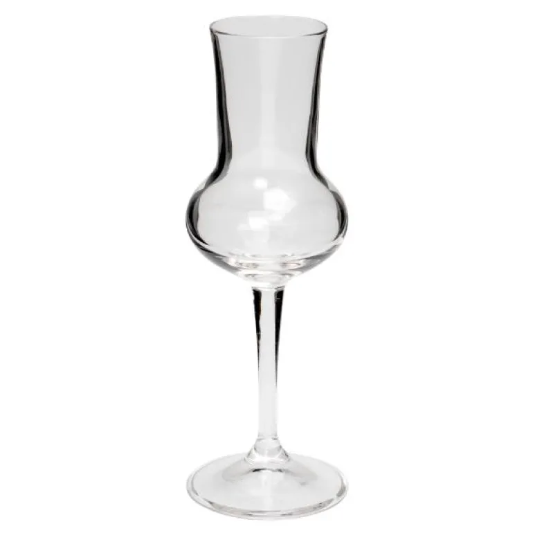 Dette grappaglasset på 8 cl kombinerer raffinert design med høy funksjonalitet, og er perfekt for profesjonelle serveringssituasjoner eller smaksopplevelser. Den spesialtilpassede formen fremhever aromaene i grappa og gir en optimal smaksopplevelse.