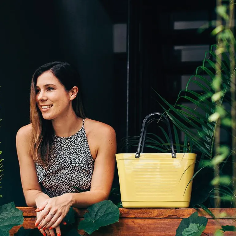 Hinza Green Plastic-vesken på 7,5 liter kombinerer funksjonalitet med et tidløst 50-tallsdesign som skiller seg ut i hverdagen. Den er produsert i Sverige og laget av biobasert plast fra sukkerrør, noe som gir et robust og slitesterkt produkt som er både praktisk og stilfullt. Med sin allsidighet er denne vesken perfekt til oppbevaring av alt fra strikkeutstyr, leker og vedkubber til bruk i hagen, på sopp-plukking, på reiser eller under sosiale sammenkomster. Den rommer det du trenger, samtidig som den er lett å bære og enkel å rengjøre.