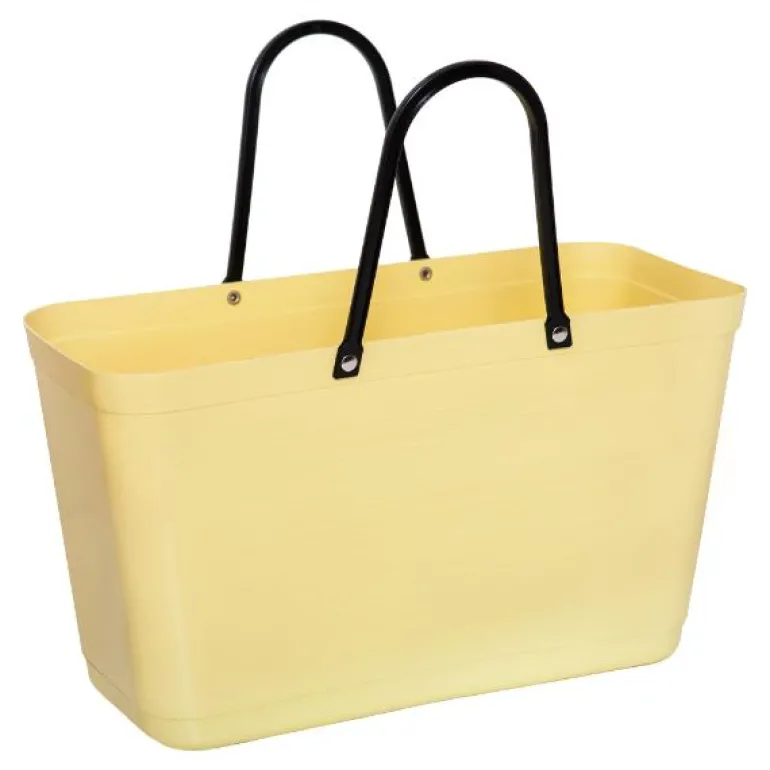 Hinza-vesken av grønn plast med et volum på 15 liter kombinerer praktisk funksjonalitet med et sjarmerende 50-tallsdesign som gjør den både stilig og allsidig. Produsert i Sverige av biobasert plast fra sukkerrør, er den et slitesterkt og pålitelig valg for både hjemmebruk og utendørsaktiviteter. Vesken er ideell for oppbevaring av strikkeutstyr, leker, vedkubber ved ovnen eller som en følgesvenn i hagen, på soppturer, reiser og sosiale anledninger.