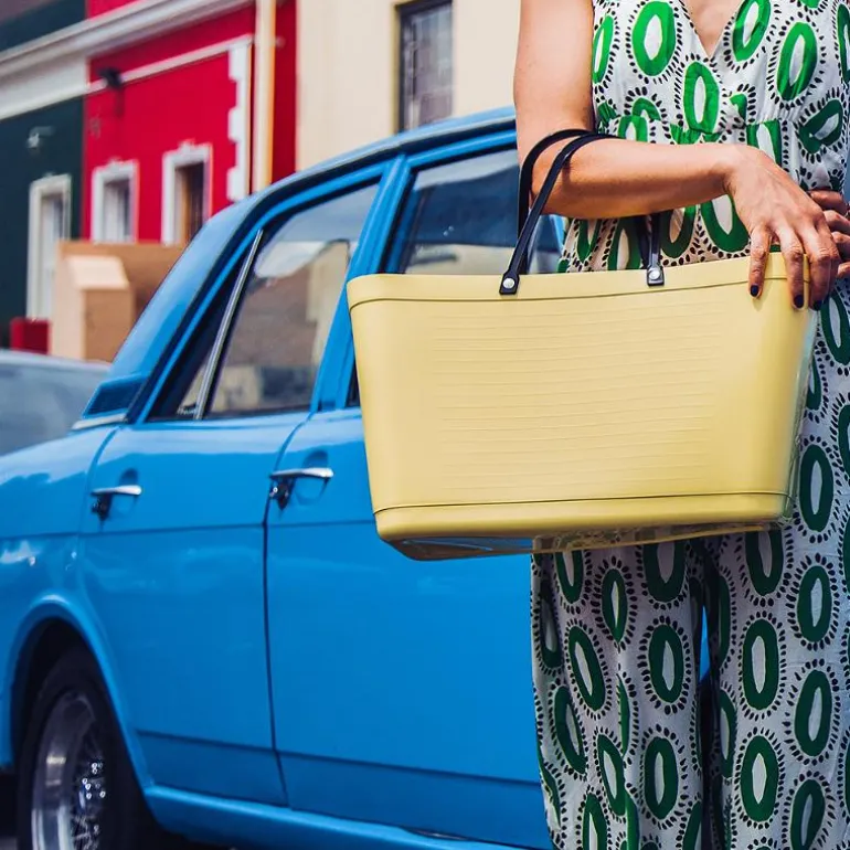 - Biobasert plast. Mer enn 60 % av plasten i vesken er laget av sukkerrør. Håndtakene er festet med pigger av forniklet messing.