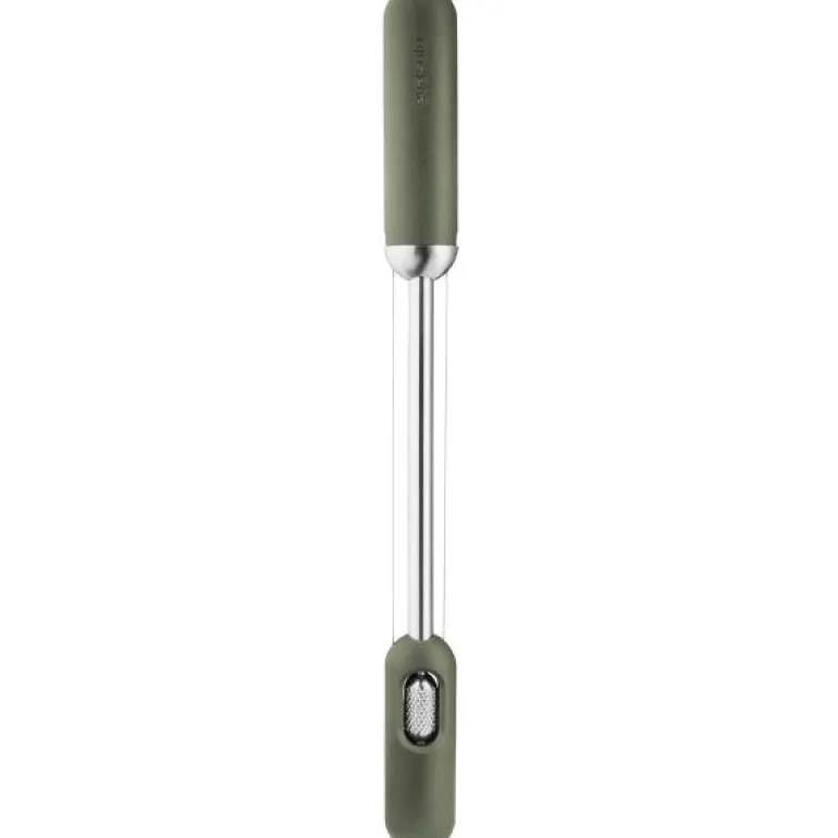 Green tools osteskjærer fra Eva Solo. Klingen i rustfritt stål gjør det lett å skjære faste og halvfaste oster i to forskjellige skivetykkelser. Osteskjæreren har praktisk håndtak i begge ender. Det gjør den lett å bruke, og sikrer like skiver for å ikke hule ut osten.
