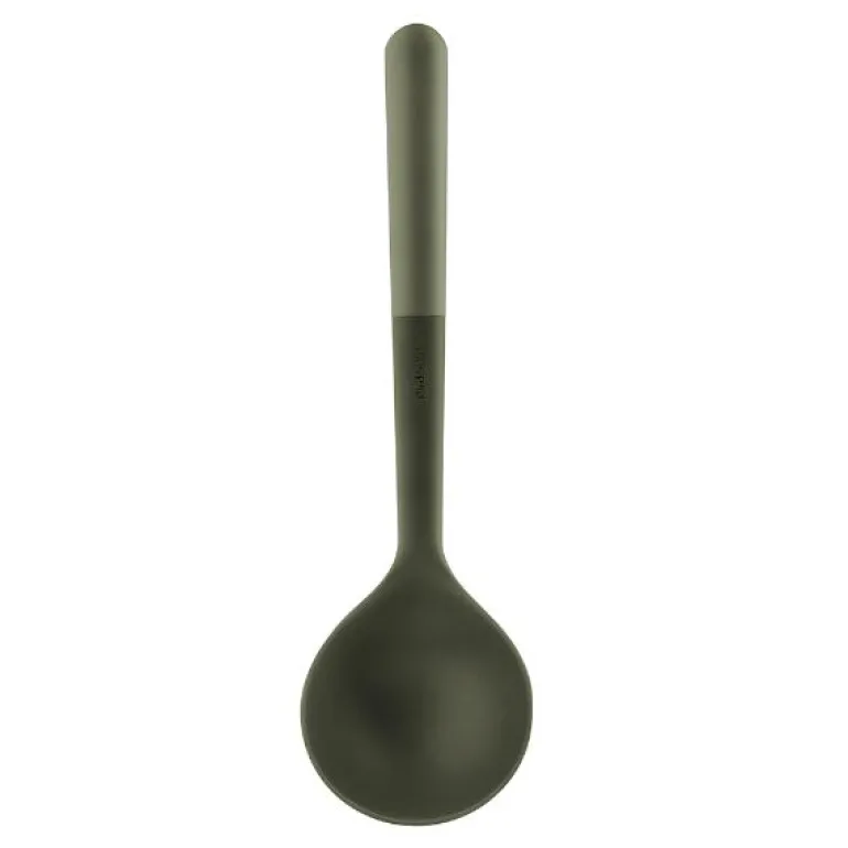 Romslig skje i enkel, klassisk design som gjør seg godt på middagsbordet. Bruk den til f.eks. gryteretter, ris, couscous, sauser eller supper. Skjeen har et praktisk silikonbelegg som forhindrer at den riper opp selv følsomme overflater. Den er varmebestandig og tåler opptil 250° C. Tåler oppvaskmaskin. Laget av silikon og varmebestandig plast (opptil 250° C). Mål: L 28 cm.