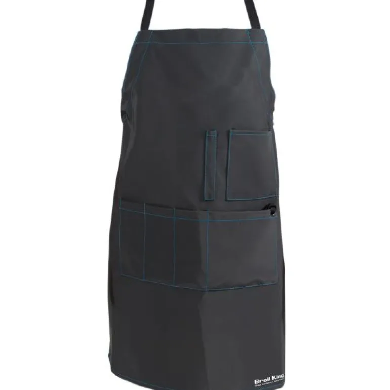 Grillforkle Broil King.I samme vannavvisende materiale som Broil King® Premium-grilltrekk. Beskytter mot fett og smuss. Lett å tørke rent og har lommer for termometer, drikke og flere redskaper. Justerbar rem med spenne og knapper på baksiden, flaskeåpner er inkludert. 79 x 68 x 0,1cm.
