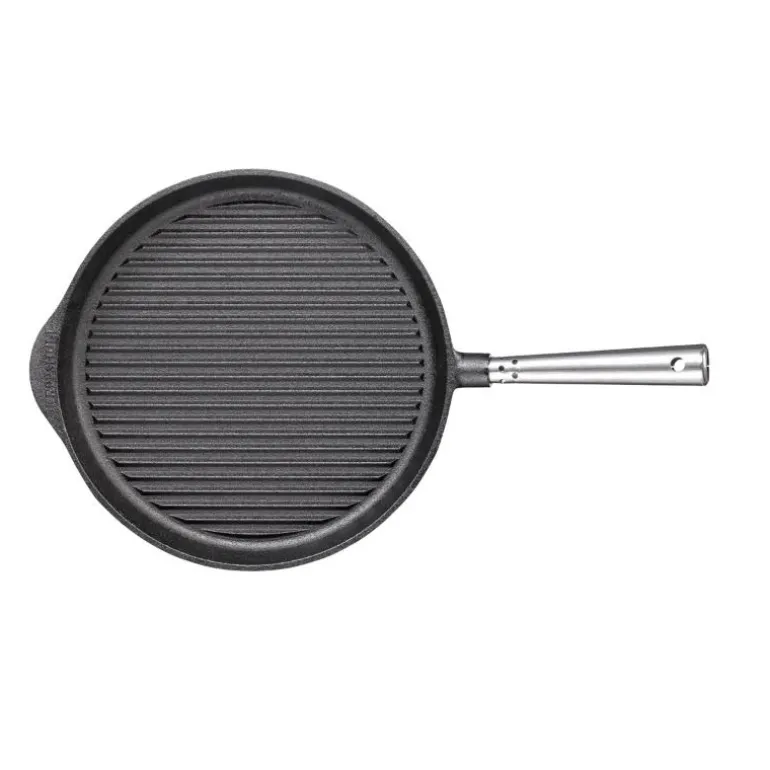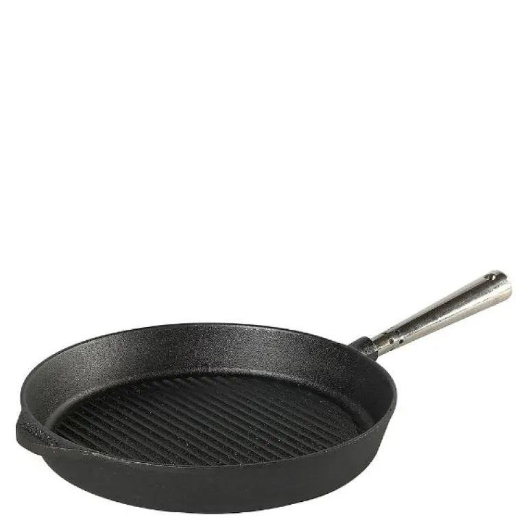Grillpanne i støpejern 28 cm med håndtak i stål.