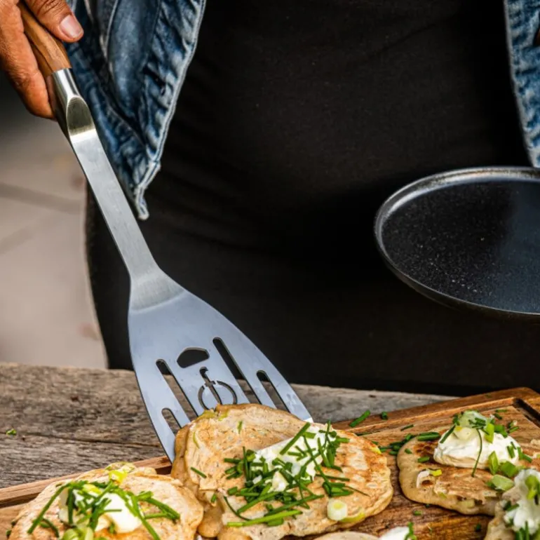 Enten du skal vende store biffer, fisk eller grønnsaker, gir denne stekespaden deg full kontroll. Den fungerer også utmerket til å skrape grillplater rene etter bruk. Et ideelt tilskudd til ethvert utekjøkken.