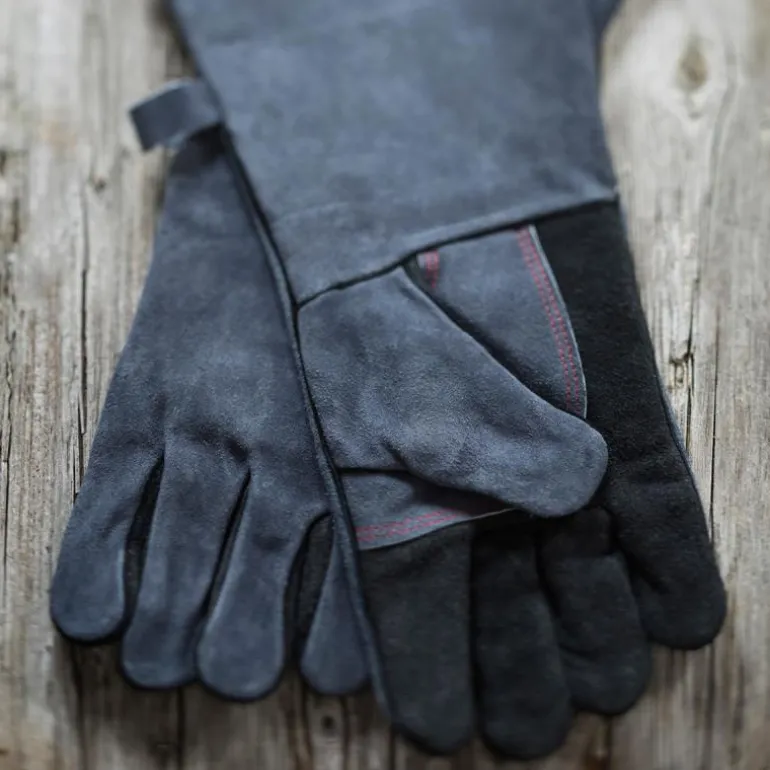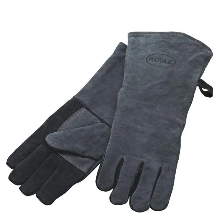 Grillvott 41,5×19 cm 2 stk lær, fra Rösle. To lange og robuste grillhansker av 100 % lær. Beskytter hender og armer mot varme og glør.