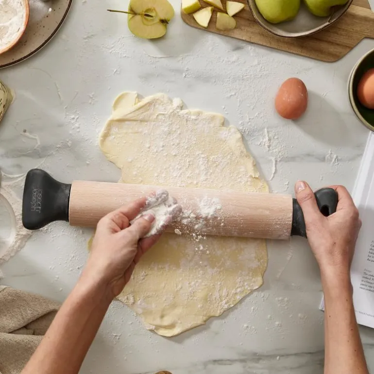 Grip-pin kjevle er et flott tillegg til kjøkkenutstyret ditt, designet for å gjøre baksten din både enklere og mer behagelig. Med sitt ergonomiske håndtak gir denne kjevlen god støtte til hendene og håndleddene mens du ruller ut deigen.