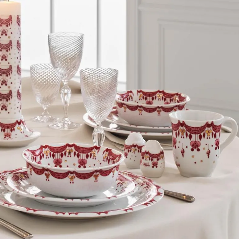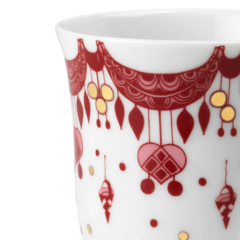Tilfør litt ekstra magi til julestemningen med dette fine julekruset fra Bjørn Wiinblad. Kruset er dekorert med håndapplikerte motiver i julens klassiske røde farge og ekte gull. Julekruset rommer 35 cl og har en avrundet hank som gjør det lett å holde når kruset fylles med varm drikke. Sett julekruset på åpne hyller på kjøkkenet og la det tilføre litt ekstra julestemning i hjemmet. Julekruset vil garantert vekke glede hos både barn og voksne år etter år når julepynten hentes frem fra glemselen. Lag for eksempel et koselig, julepyntet kaffebord, med julekrus og skåler fra samme serie.