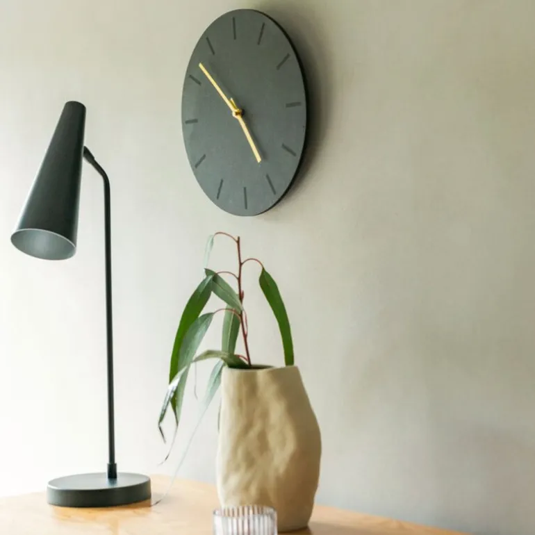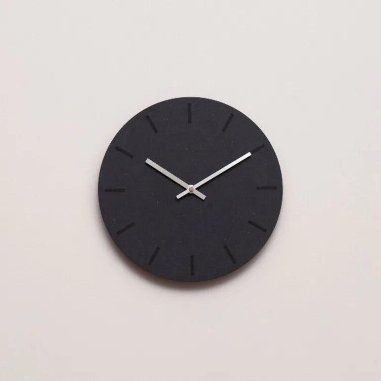 Hemverks Gunpowder veggklokke er en 28 cm klokke i mørk grå MDF, designet for å bringe et minimalistisk og industrielt preg til veggen. Med sin melerte, matte overflate og gjennomfarget materiale utstråler klokken en naturlig dybde og tekstur. Sølvviserne tilfører en ren og moderne kontrast til den mørke urskiven, noe som gjør klokken til et subtilt blikkfang. Kombinasjonen av mørkt tre og sølv gir en nøytral eleganse som kan passe til ulike interiørstiler, og klokken kan skreddersys med ulike visere for ønsket utseende.