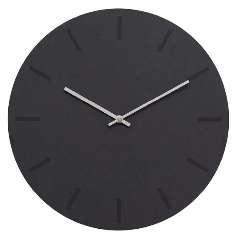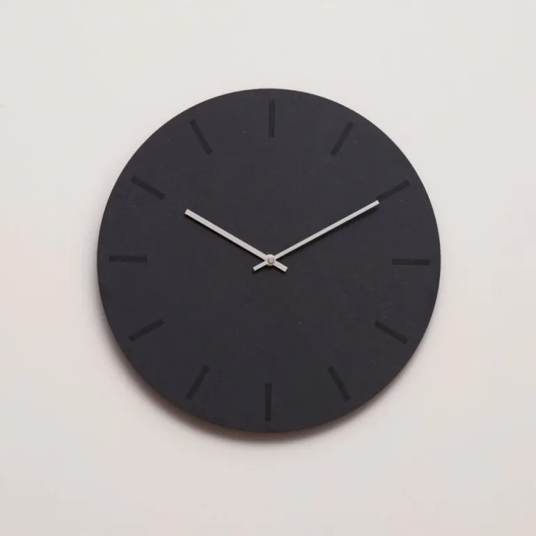 Denne Gunpowder veggklokken fra Hemverk gir et stilrent og moderne inntrykk med sin 38 cm store, mørkegrå urskive i melert MDF. Med sin matte, glatte finish skaper klokken en dybde og struktur som passer perfekt i minimalistiske, nordiske interiører. Sølvviserne tilfører et nøytralt og elegant preg som gir klokken et eksklusivt uttrykk uten å være dominerende. Tilpass visernes farge for å oppnå en balanse mellom monokromt og varmt, eller la den beholde et stramt, moderne utseende som gir en tydelig kontrast på veggen.