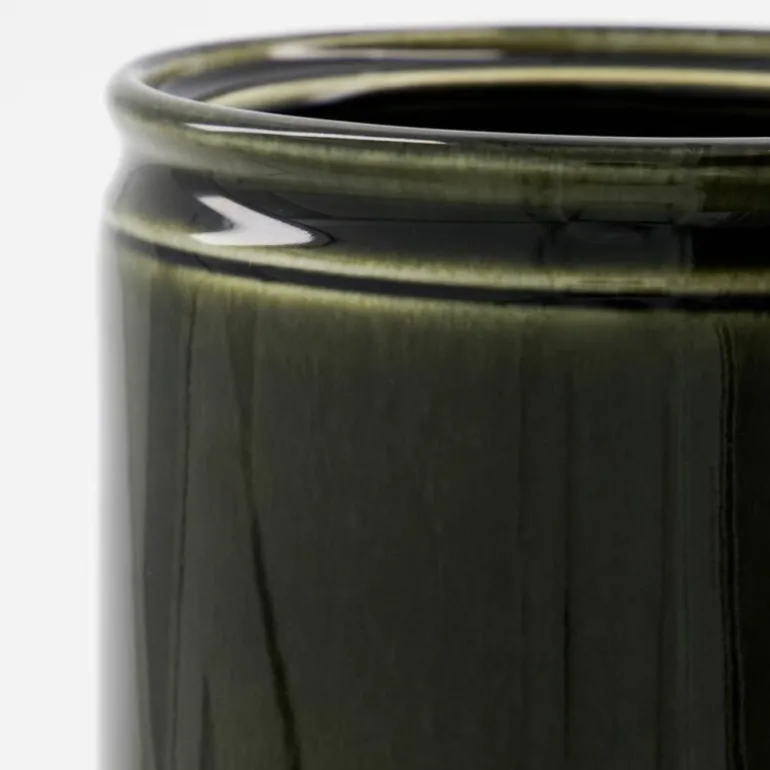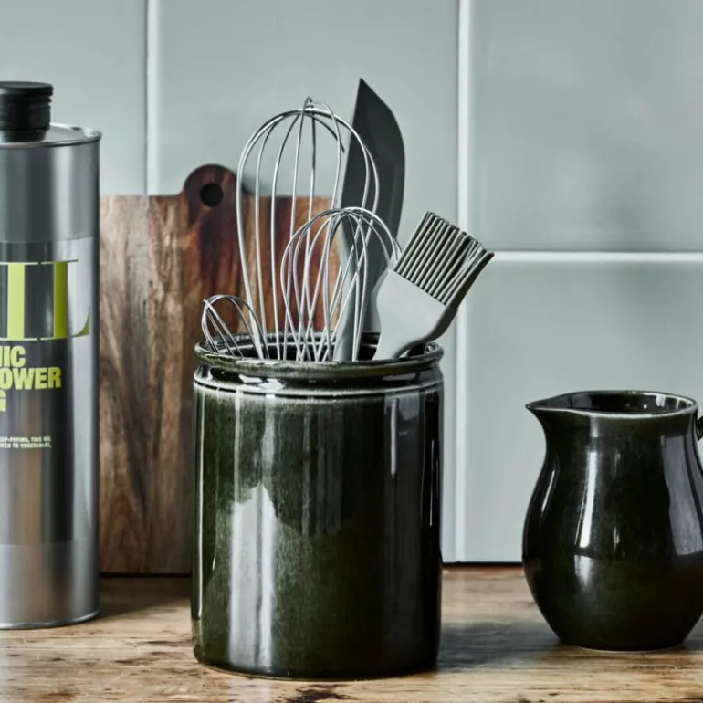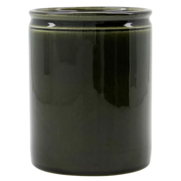 Hala krukke på 14×11 cm i grønn fra Nicolas Vahé er en elegant og funksjonell oppbevaringsløsning for kjøkkenet. Laget av robust steintøy med en glansfull grønn glasur, tilfører den både stil og praktisk nytte til kjøkkenbenken.