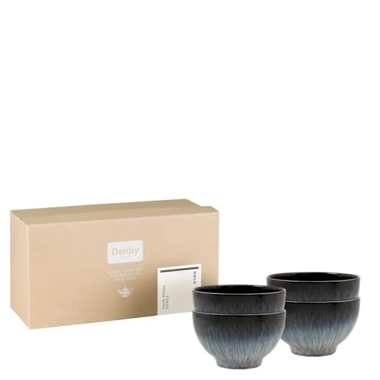 Denbys Halo fremstilles i England av lokal leire. Hver del av Halo er håndlaget med ferdigheter i keramikk som føres videre gjennom generasjoner. To glasurer kombineres for å skape dette unike og effektfulle serviset: Halo. Alle som eier en Denby vet hvor allsidig den er og hvor bra den føles. Hver del er designet for matlaging, servering og å nyte mat. Denbys servise er laget for riktig mat, ikke bare for syns skyld. Dens tilrettelegging for fingre, for spisepinner, for griller, for kjøkkenet ditt – Denby håndterer ting på de aller fleste kjøkkener, fra den minste koppen til den største gryten, og alle våre deler kan trygt brukes i mikrobølgeovn, oppvaskmaskin og fryser. Vi har over 5000 glasurer, alle hardere enn stål. Det har tatt oss 180 år å få glasurene våre så feilfrie som de er. Denby er smashing stuff! Vårt servise er virkelig mye vanskeligere å knekke enn andre serviser. Hver Denby-bit er unik. Den går gjennom 25 par hender før den til slutt havner i dine.