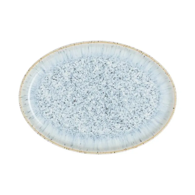 Denbys Halo fremstilles i England av lokal leire. Hver del av Halo er håndlaget med ferdigheter i keramikk som føres videre gjennom generasjoner. To glasurer kombineres for å skape dette unike og effektfulle serviset: Halo. Alle som eier en Denby vet hvor allsidig den er og hvor bra den føles. Hver del er designet for matlaging, servering og å nyte mat. Denbys servise er laget for riktig mat, ikke bare for syns skyld. Dens tilrettelegging for fingre, for spisepinner, for griller, for kjøkkenet ditt – Denby håndterer ting på de aller fleste kjøkkener, fra den minste koppen til den største gryten, og alle våre deler kan trygt brukes i mikrobølgeovn, oppvaskmaskin og fryser. Vi har over 5000 glasurer, alle hardere enn stål. Det har tatt oss 180 år å få glasurene våre så feilfrie som de er. Denby er smashing stuff! Vårt servise er virkelig mye vanskeligere å knekke enn andre serviser. Hver Denby-bit er unik. Den går gjennom 25 par hender før den til slutt havner i dine.