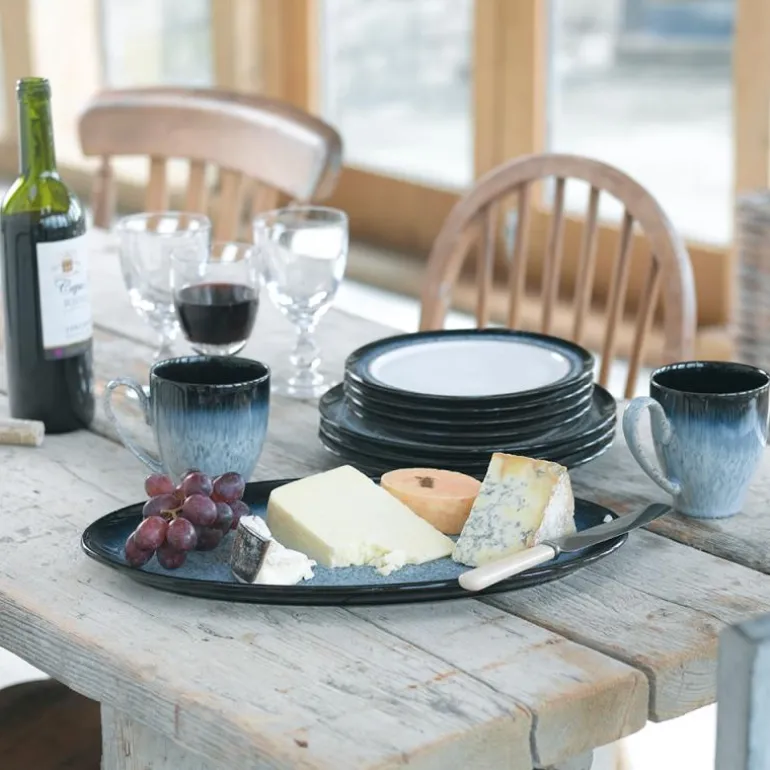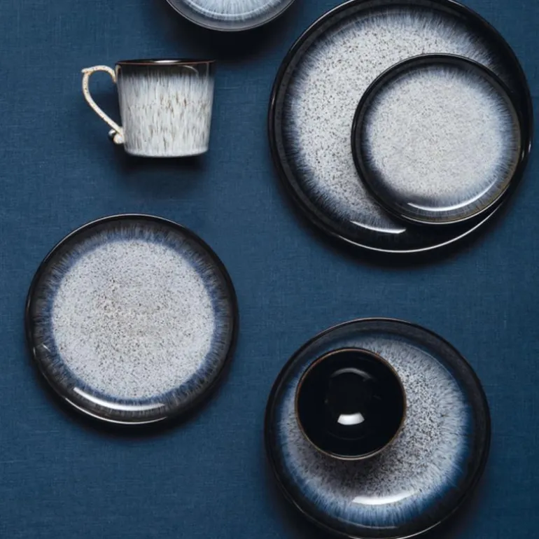 Denbys Halo fremstilles i England av lokal leire. Hver del av Halo er håndlaget med ferdigheter i keramikk som føres videre gjennom generasjoner. To glasurer kombineres for å skape dette unike og effektfulle serviset: Halo. Alle som eier en Denby vet hvor allsidig den er og hvor bra den føles. Hver del er designet for matlaging, servering og å nyte mat. Denbys servise er laget for riktig mat, ikke bare for syns skyld. Dens tilrettelegging for fingre, for spisepinner, for griller, for kjøkkenet ditt – Denby håndterer ting på de aller fleste kjøkkener, fra den minste koppen til den største gryten, og alle våre deler kan trygt brukes i mikrobølgeovn, oppvaskmaskin og fryser. Vi har over 5000 glasurer, alle hardere enn stål. Det har tatt oss 180 år å få glasurene våre så feilfrie som de er. Denby er smashing stuff! Vårt servise er virkelig mye vanskeligere å knekke enn andre serviser. Hver Denby-bit er unik. Den går gjennom 25 par hender før den til slutt havner i dine.