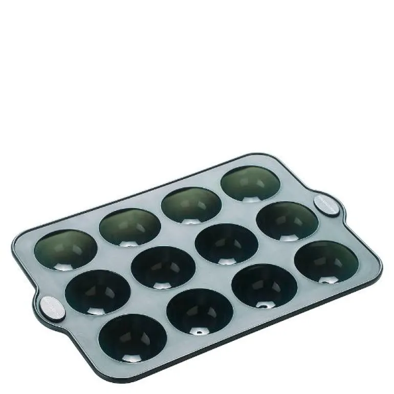 Sjokolade-/puddingform med 12 hull, dia. 6,5 cm, i grå silikon med stabiliserende stålkant.Tåler fryser.Maks temp.: + 220 gr. C / – 20 gr. CMål: 35,9 x 24,5 x 3,5 cm. Du finner en veiledning til temperering av sjokolade på Mette Blomsterbergs hjemmeside metteblomsterberg.no. Her kan du også utforske andre nyttige tips, triks og deilige oppskrifter med sjokolade.