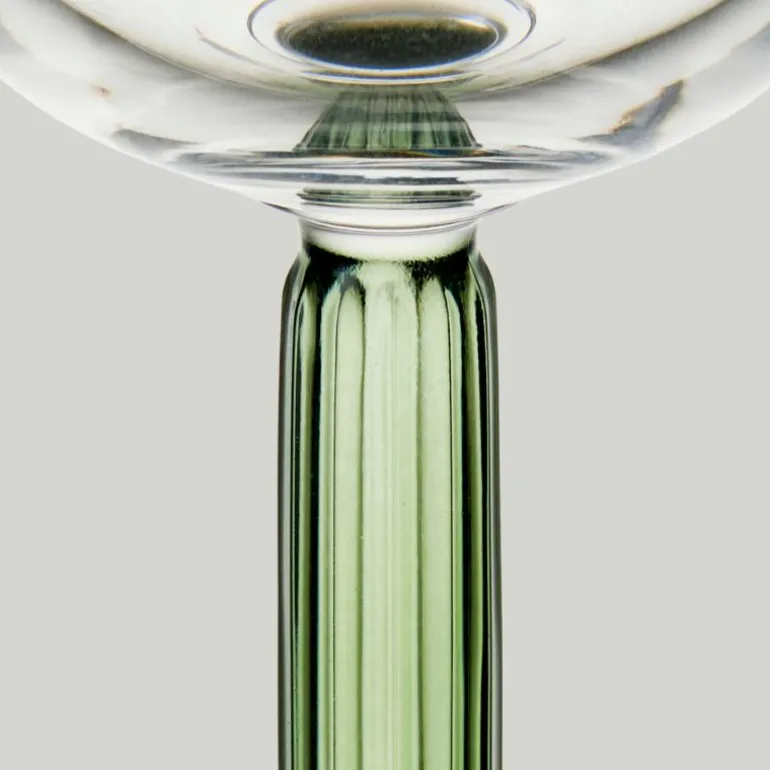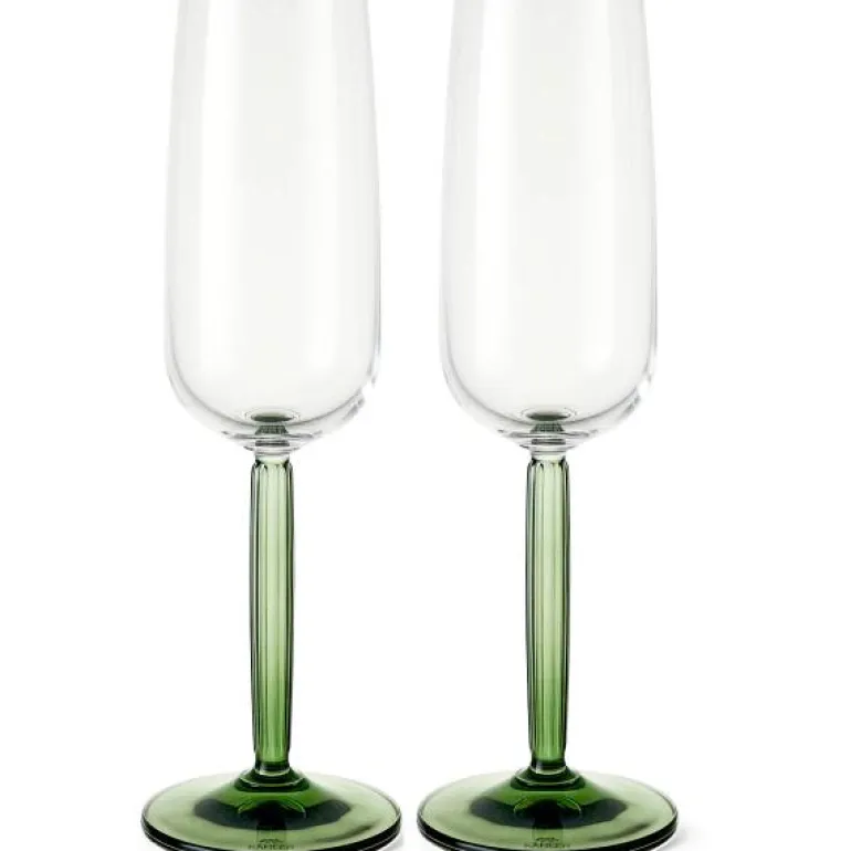 Hammershøi champagneglass 24 cl 2 stykk i fargen grønn. En god champagne smaker enda bedre når den serveres i elegante champagneglass som også umiddelbart gjør stemningen festligere. Hell favorittboblene dine i dette elegante champagneglasset med en klar stett og base fra Kähler’s Hammershøi-serie. Det kommer i topakning og er tilgjengelig enten i en helt klar variant eller i denne fargevarianten med grønn stett og fot, noe som gir en ny dimensjon til stettens ikoniske riller.