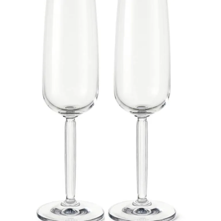 Hammershøi champagneglass 24 cl 2 stk i klart glass. En god champagne smaker enda bedre når den serveres i elegante champagneglass som også umiddelbart gjør stemningen festligere. Hell favorittboblene dine i dette elegante champagneglasset med en klar stett og base fra Kähler’s Hammershøi-serie. Den kommer i en topakning og er tilgjengelig enten i denne helt gjennomsiktige varianten eller med grønn stett og fot, noe som gir en ny dimensjon til de ikoniske rillene som pryder stetten.