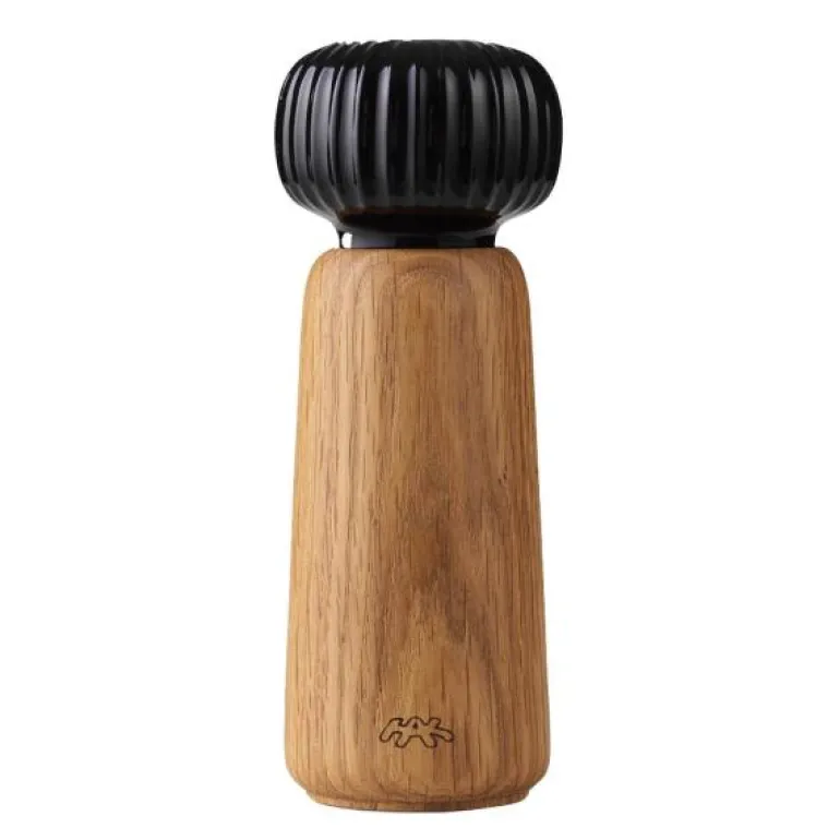 Den nye elegante, sorte glasuren tilfører et tidløst og eksklusivt preg til kvernene. Når keramikken kombineres med eiketreets varme uttrykk, oppstår et bånd mellom den nordiske naturens inspirerende grunnmaterialer.