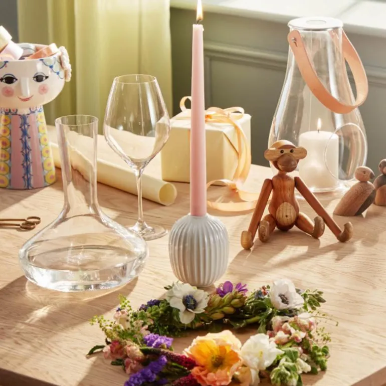De elegante, hvite lysestakene fra Hammershøi er designet av Hans-Christian Bauer med inspirasjon fra Svend Hammershøi, som var kunstner på Kählers gamle verksted. De store lysestakene i nordiske farger har de samme flotte rillene som resten av Hammershøi-serien. Bruk den store lysestaken sammen med andre lysestaker eller Hammershøi-vaser for å skape en stemningsfull og stilren look. Hvis du har fått stearin på produktet, kan du med fordel helle varmt vann over produktet. Dette vil få stearinen til å smelte, slik at du lett kan tørke den av. Sett aldri staken på et lett antennelig materiale. For at unngå brannfare må du sørge for at lyset sitter godt fast i staken. Bruk gjerne lysmansjetter for å sikre et godt feste. For å unngå varmepåvirkning, må du ikke la lyset brenne helt ned i staken. Bredde: 85mm Høyde: 100mm