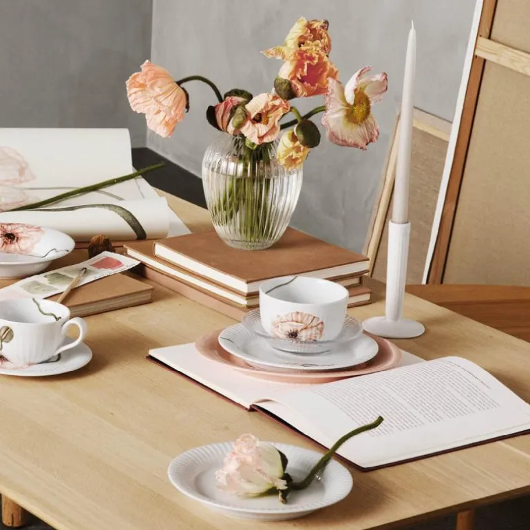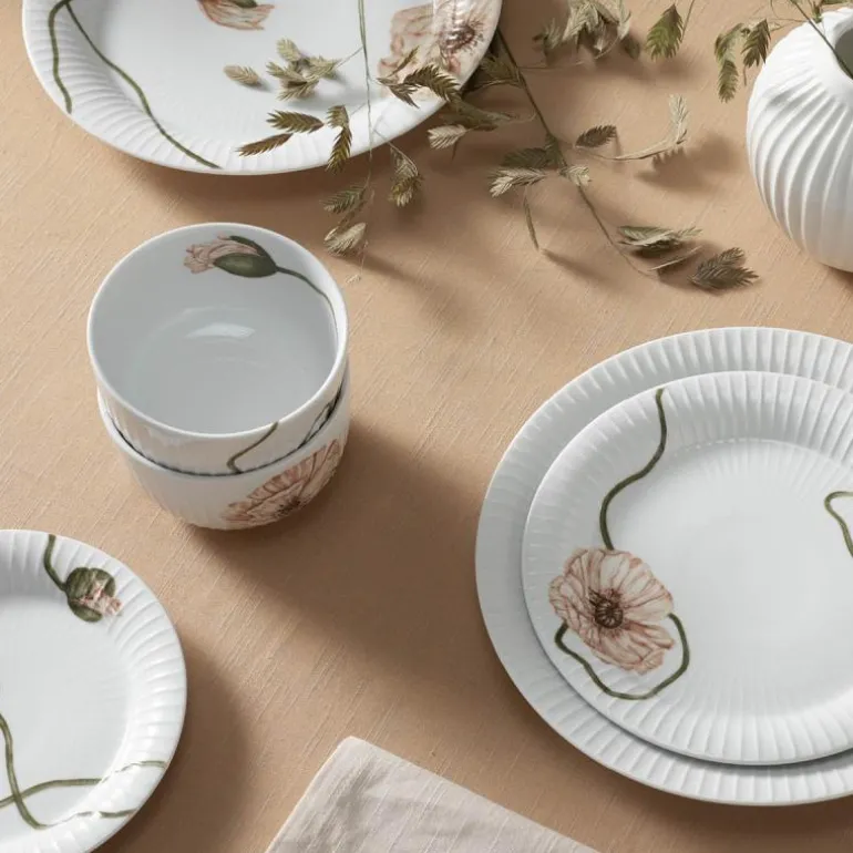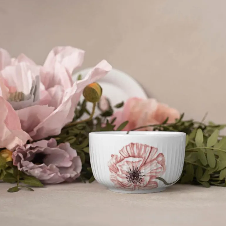 Den fine skålen fra Hammershøi Poppy er skapt for å dekke et stilfullt bord med et kreativt, personlig preg. De vakre akvarelltegningene av valmueblomster er håndmalt av designeren Rikke Jacobsen og overført til porselenet. Serviset har ikke noe «opp» eller «ned», så du kan variere bordets uttrykk fra gang til gang. Kombiner gjerne Poppy-skålen med Hammershøis klassiske hvite servise eller glasserie og skap et uformelt bord med sans for detaljer. Hammershøi Poppy finnes også som middagstallerken, lunsjtallerken, kaketallerken, dyp tallerken og krus.