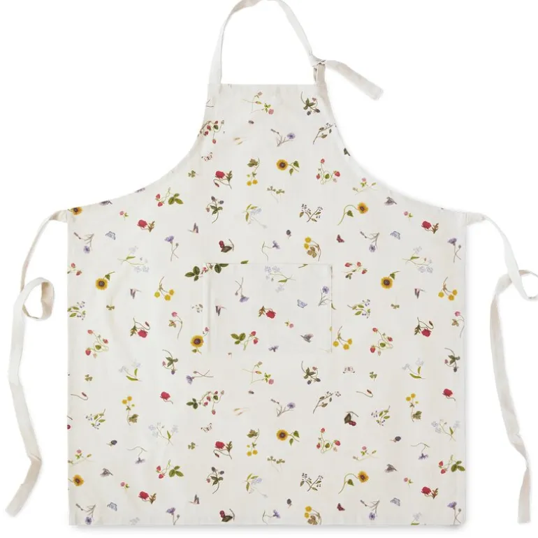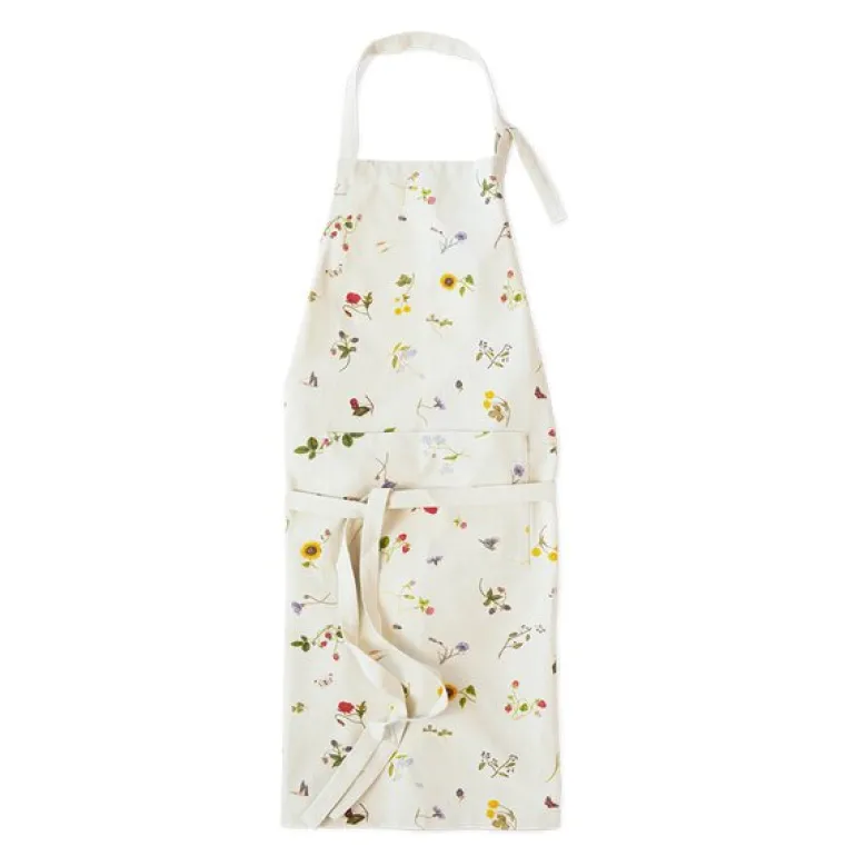 Med Hammershøi Summer forkle i 88×98 cm får du en funksjonell kjøkkentekstil med et sommerlig uttrykk som gir en ekstra dimensjon til matlagingen. Forkledet er utsmykket med motiver som sommerbær, solsikker, forglemmegei og flagrende sommerfugler – alle håndmalt av Rikke Jacobsen og overført til stoffet som lyse akvareller.
