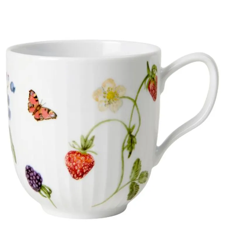 Hammershøi Summer krus 33 cl summer berries er essensen av sommer i full blomst, udødeliggjort på utvalgte deler fra Kählers populære Hammershøi-serie. Dekk kaffebordet med disse krusene for å skape en hyggelig sommerstemning og kos deg med en liten godbit i hagen, på terrassen, balkongen eller på hytta. Kruset rommer 33 cl og er pyntet med sommersøte bær og en leken og poetisk sommerfugl.