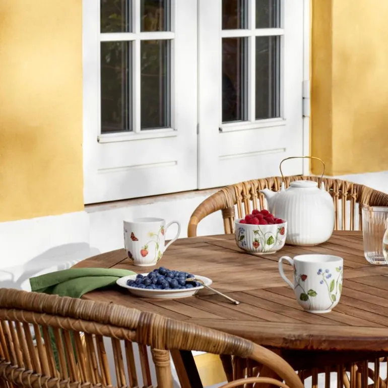 Seriens diskré riller gir kruset et elegant og klassisk uttrykk, mens illustrasjonene gir et koselig preg av sommer. Når du ser på Hammershøi Summer, kan du nesten kjenne solstrålene og den varme sommerbrisen på huden. Og kunstneren bak akvarelldekorasjonene, Rikke Jacobsen, var faktisk inspirert av den danske sommerens magiske former, farger og følelser.