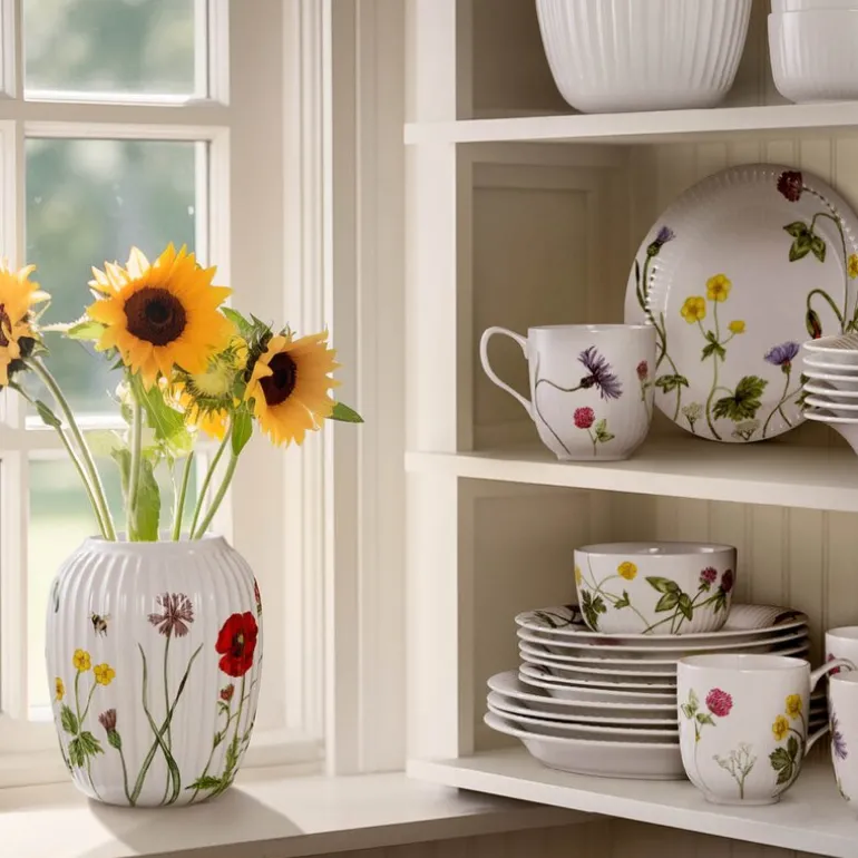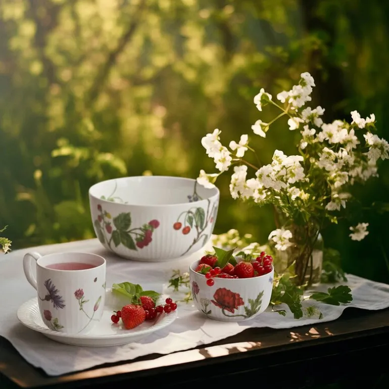 Motivene er skapt av Rikke Jacobsen, kjent for sine detaljerte akvareller, i samarbeid med Hans-Christian Bauer, designeren av Hammershøi-serviset. Sammen har de skapt et uttrykk som hedrer flora og fauna og fanger årstidens stemninger perfekt.