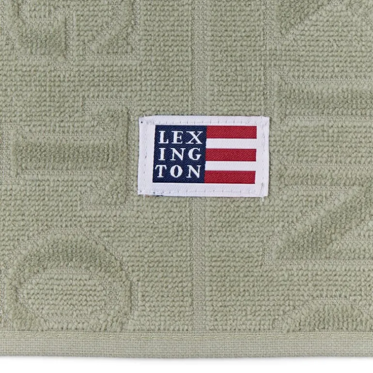 Gi badet et sofistikert preg med Lexington sitt velourhåndkle i jacquarddesign. Dette håndkleet på 30×50 cm, i den delikate fargen vintage green, er laget av myk og absorberende 600 g ringspunnet bomullsvelur. Det elegante jacquardmønsteret med Lexington-logo og de solide twillkantene gir et eksklusivt uttrykk.