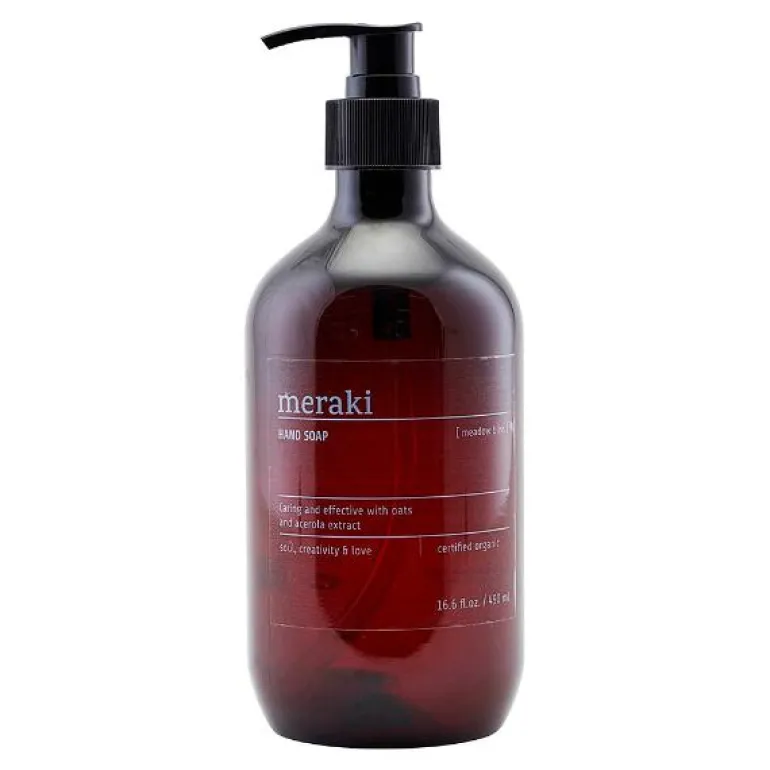 Gi hendene dine pleie mens du vasker dem med denne Meadow Bliss håndsåpen fra Meraki. Økologisk aloe vera og glyserin gir fuktighet og beskytter huden mot uttørking, mens et økologisk havreekstrakt virker pleiende og beroligende. Med sitt høye innhold av