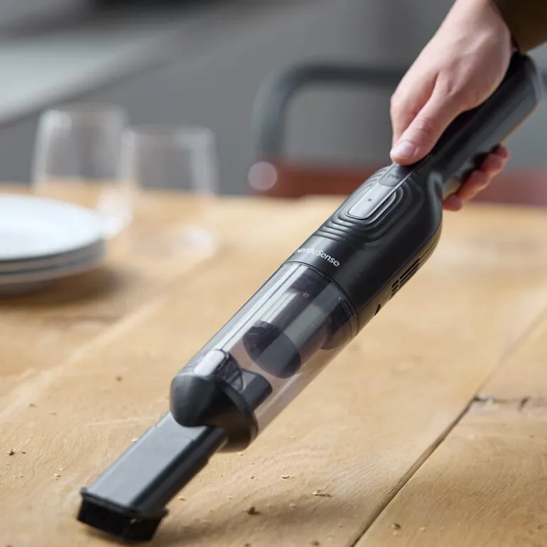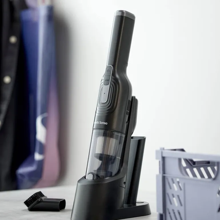 Håndstøvsuger 80W i svart fra Nordic Sense er det perfekte verktøyet for å gjøre rengjøringen enkel og effektiv. Denne lette og kompakte modellen er utstyrt med en kraftig motor på 80 watt og tilbyr to effektnivåer for å dekke ulike rengjøringsbehov.