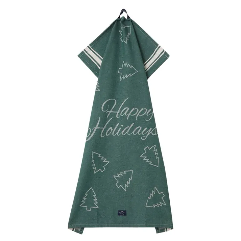 Lexington «Happy Holidays» jacquard kjøkkenhåndkle grønn på 50×70 cm er et ideelt tilskudd til juleforberedelsene på kjøkkenet. Dette håndkleet, laget av 100 % økologisk bomull, kombinerer funksjonalitet med et klassisk design som fyller kjøkkenet med juleglede. De garnfargede stripene og julemotivet i grønn gir et tidløst og koselig preg som passer perfekt til høytiden.
