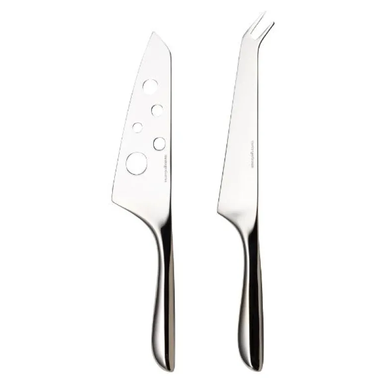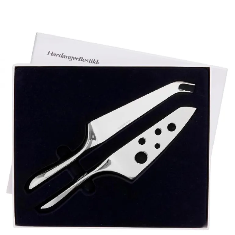 Ostesett i Hardangerserien fra Hardanger Bestikk. Settet har den perfekte balansen mellom funksjon og form. Den brede kniven utstyrt med hull for å unngå at myke oster kleber seg. Den smale kniven har to tinder som kan brukes som gaffel i kombinasjon med den brede kniven er også laget for hardere oster. Stålet som er av 18/10 rustfritt stål tåler oppvaskmaskin, og produktet har livstidsgaranti. Ostesettet leveres i gaveeske og inneholder to deler;