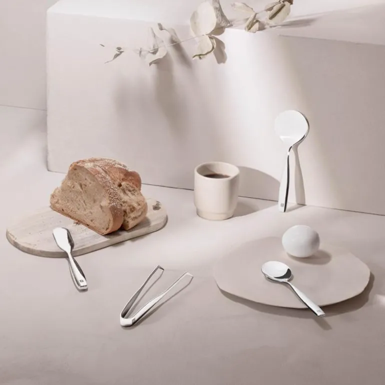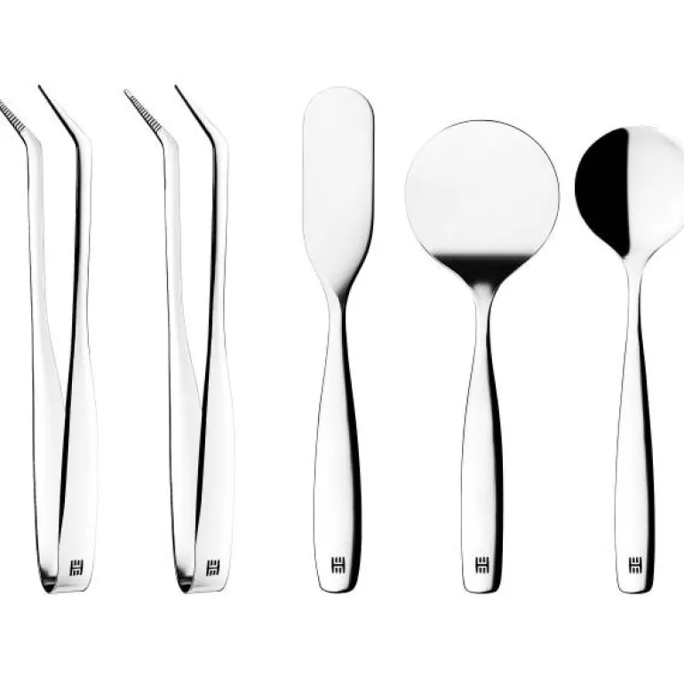 Buffè-settet fra Hardanger Bestikk er et chict og retroaktig anretningsbestikk. Bruk det til matservering rundt frokostbordet, i en smakfull buffet, under matlaging eller i krukker og skåler på kjøkkenet. Settet inneholder en påleggsspade, en smørkniv, en syltetøyskje og to påleggsklyper.