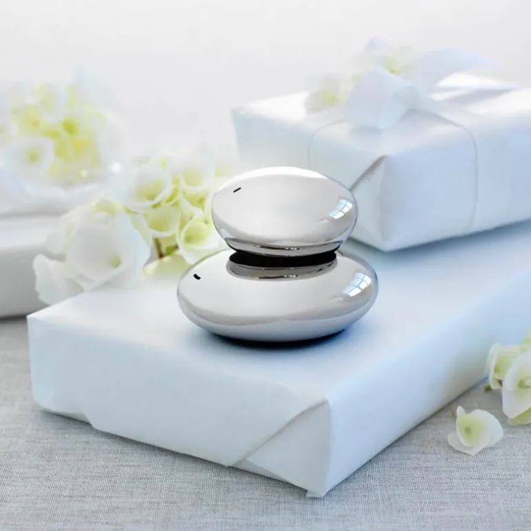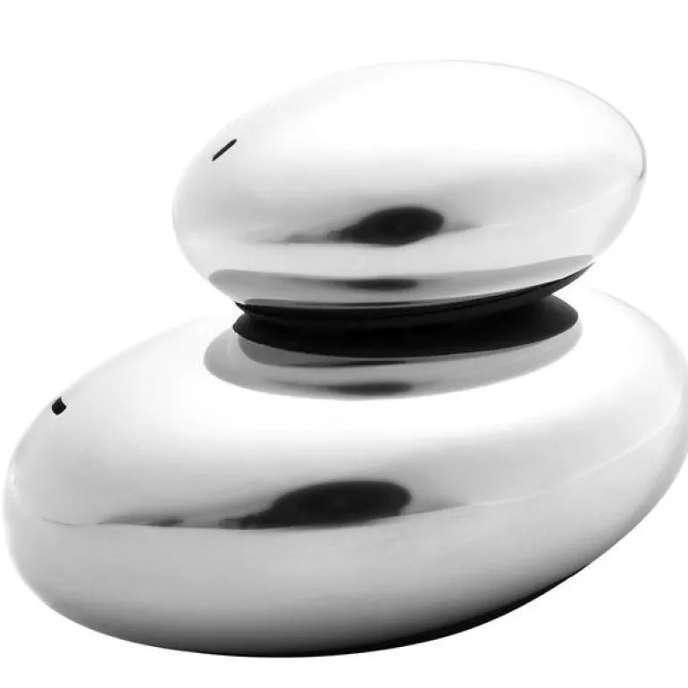 Salt og Pepperbøsse i Hardangerserien fra Hardanger Bestikk er laget av Per Finne, formet for å gi deg assosiasjoner til norske, tradisjonelle smaker. Utformingen henter inspirasjon fra naturen, og produktet er modellert som elvestener plukket fra sjøkanten i Hardanger. Dette er et produkt som skiller seg helt klart ut i en borddekking, eller som en del av ditt kjøkkeninteriør. Salt og pepperbøssen skal som alle våre produkter inspirere til å samles rundt gode matopplevelser. Stålet som er av 18/10 rustfritt stål tåler oppvaskmaskin, og produktet har livstidsgaranti. Salt og Pepperbøsse leveres i gaveeske og inneholder to deler som kan stables oppå hverandre;