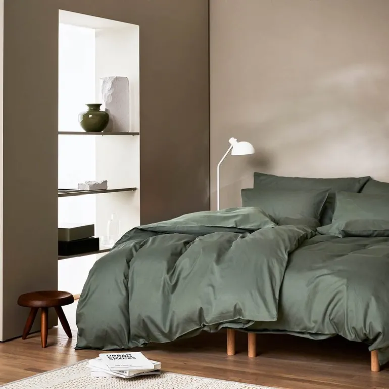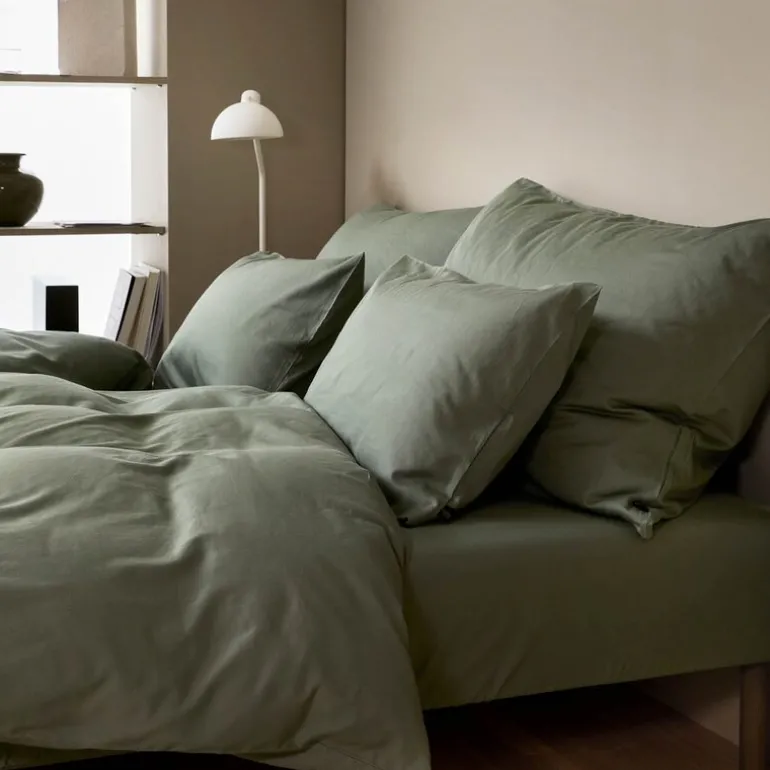 Harmoni sengesett 140 x 200 cm i dempet grønn fra Høie kombinerer luksuriøs mykhet med et avslappet uttrykk. Laget av ren bomullssateng og steinvasket for ekstra komfort, har stoffet en lett, matt overflate som gir sengen et mykt og innbydende preg. Den behagelige teksturen og den dempede fargen skaper en harmonisk og rolig stemning på soverommet.