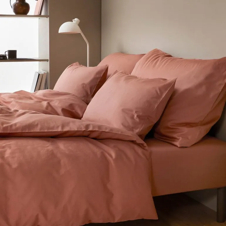 Harmoni sengesett 140 x 220 cm i dus terracotta fra Høie kombinerer luksuriøs mykhet med et avslappet uttrykk. Laget av ren bomullssateng og steinvasket for ekstra komfort, har stoffet en lett, matt overflate som gir sengen et mykt og innbydende preg. Den behagelige teksturen og den dempede fargen skaper en harmonisk og rolig stemning på soverommet.