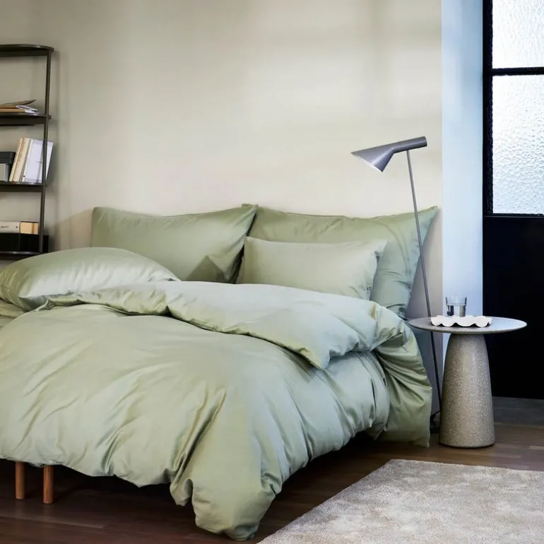 Harmoni sengesett 140 x 220 cm i lys grønn fra Høie kombinerer luksuriøs mykhet med et avslappet uttrykk. Laget av ren bomullssateng og steinvasket for ekstra komfort, har stoffet en lett, matt overflate som gir sengen et mykt og innbydende preg. Den behagelige teksturen og den dempede fargen skaper en harmonisk og rolig stemning på soverommet.