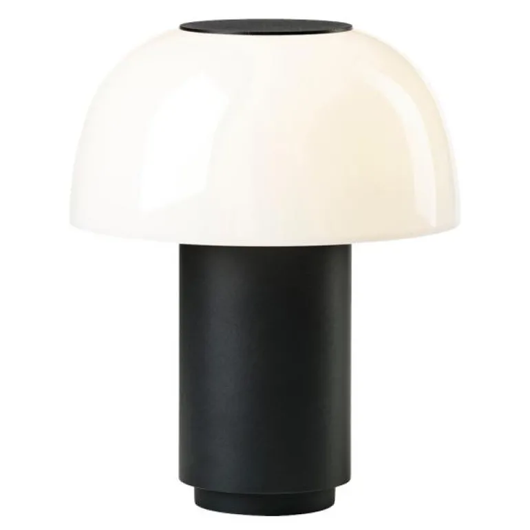 Harvest Moon-lampe fra Zone Denmark i svart, med en høyde på 22 cm. Denne flyttbare lampen er designet for å lyse opp høstkveldene, og gir et mykt og behagelig lys som skaper en koselig atmosfære. Lampen har en sylinderformet base og en hvit topp som sprer lyset jevnt.