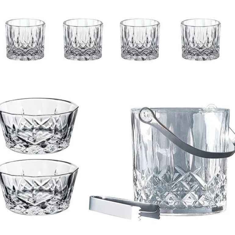 Harvey glassett 4 stk whisky, 2 snackskål og 1 isbøtte – Aida har skapt et elegant mønster inspirert av elegante krystallglass. Med Harvey serien får du moderne eleganse til hverdagspriser.